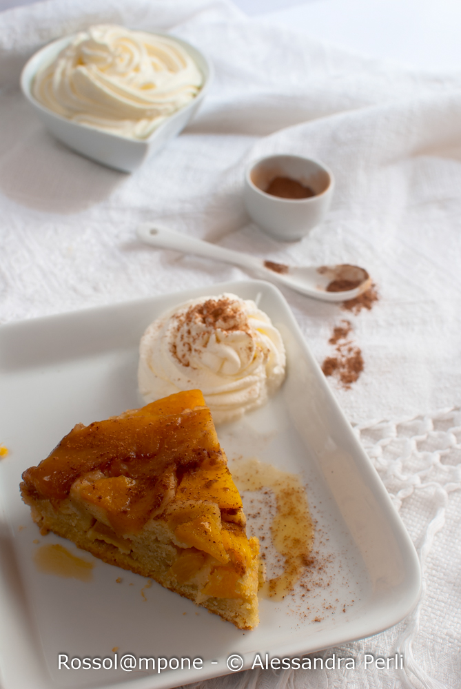 Posizionare una tortiera dal diametro di circa 22 cm (io ne ho usata una in alluminio, in alternativa si può usare una tortiera con cerchio apribile antiaderente) sul fornello e scaldare a fuoco basso. aggiunger eil burro a tocchetti e farlo sciogliere, aggiungere lo zucchero e la cannella e mescolare bene fino a quando non inizia a bollire. Aggiungere il rhum e mescolare qualche secondo e spegnere il fuoco. lasciare riposare mentre si preapara la base, a temperatura ambiente.